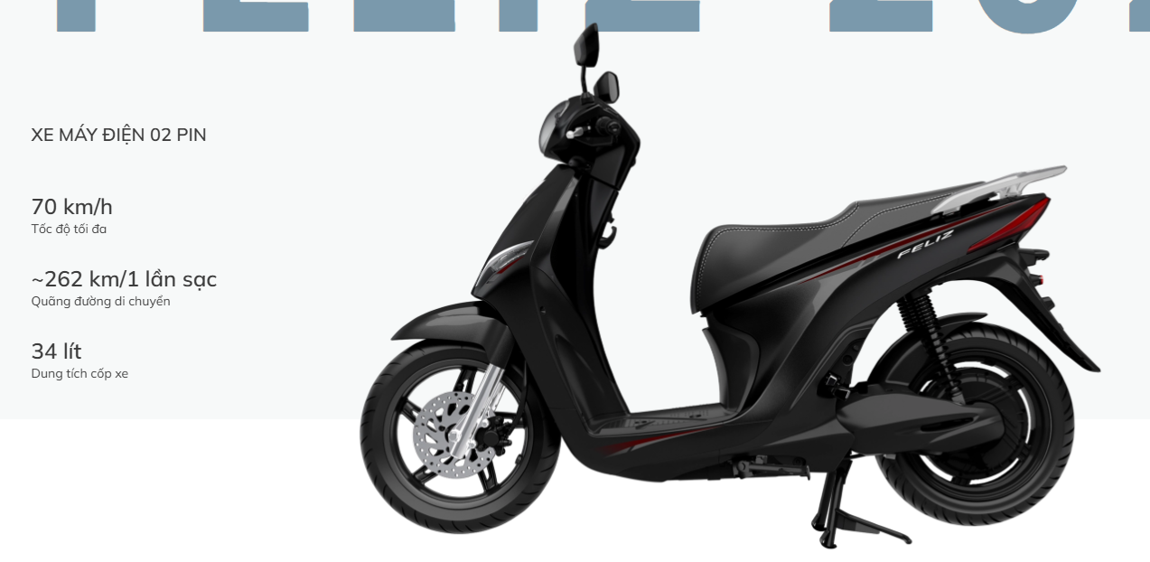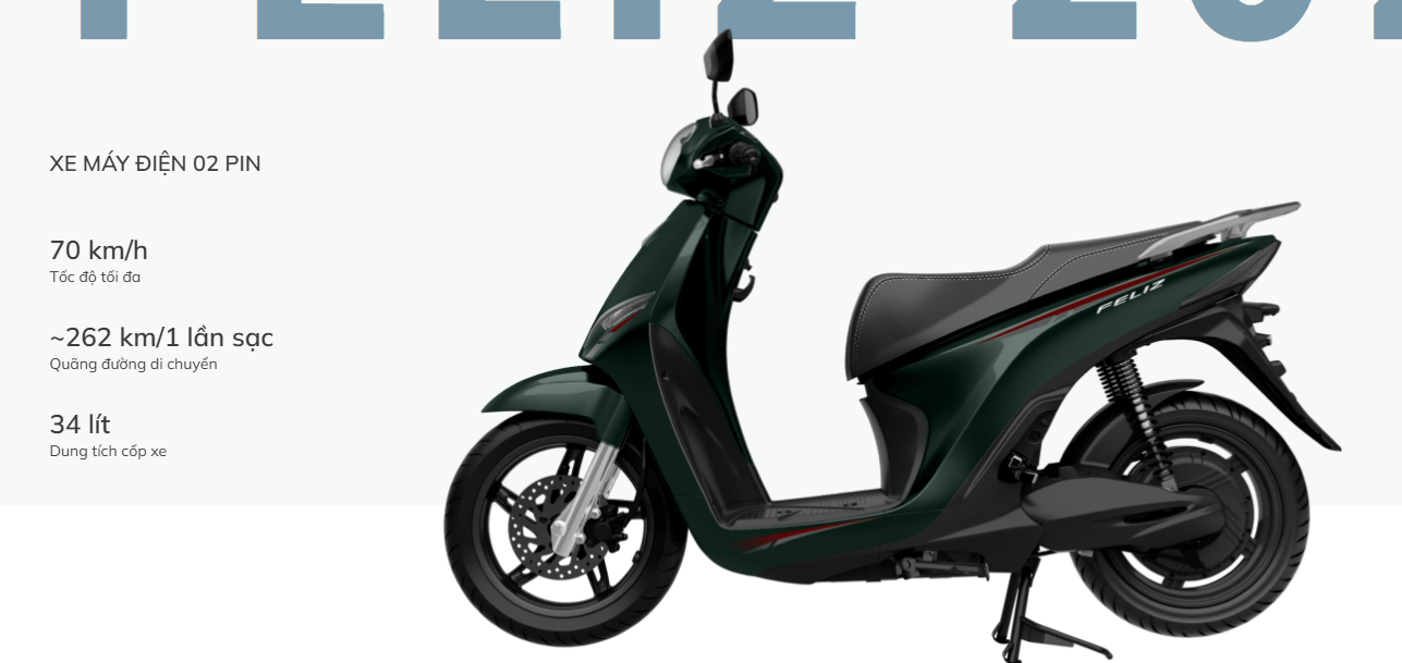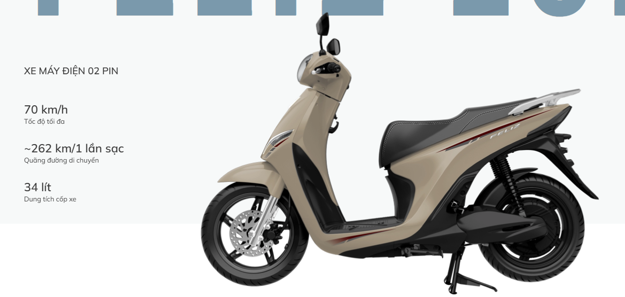 Xe sử dụng pin LFP độc quyền với dung lượng 2.4kWh giúp đi được quãng đưỡng 130 km mỗi lần sạc (nếu duy trì tốc độ 30 km/h). Nếu di chuyển tốc độ cao thì quãng đường sẽ còn khoảng từ 80 – 90 km mỗi lần sạc. Bộ sạc đi kèm Feliz 2025 có công suất 400W – 1000W giúp pin sạc đầy nhanh chóng, chỉ mất khoảng 6,5 giờ.